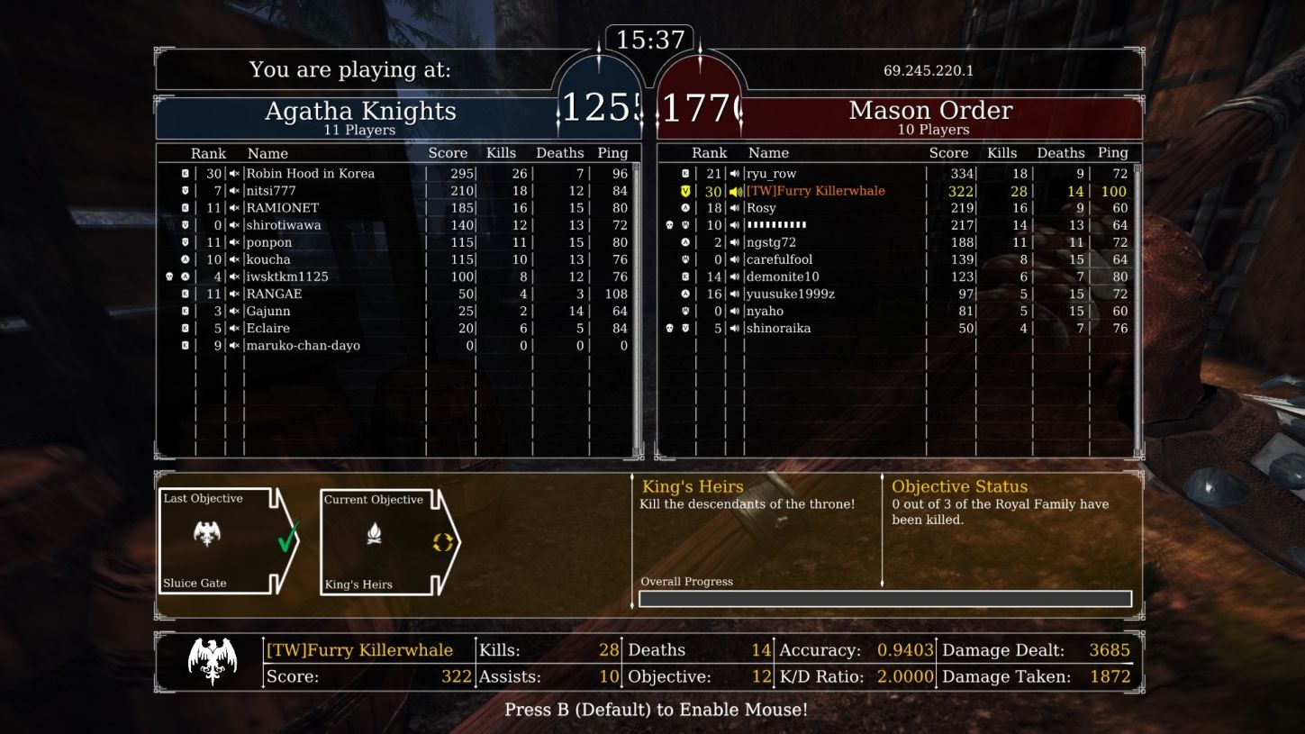 最後附上我使用Billhook的分數,因為不夠熟稔,所以我大概K/D只到2~2.5左右。比起最擅長的Halberd有2.5~22這樣的range,算是打的普普通通。只能說還算可以作一個佐證,證明我文章都是實實在在,自己確實有練到一定程度才寫的。希望你會喜歡:D