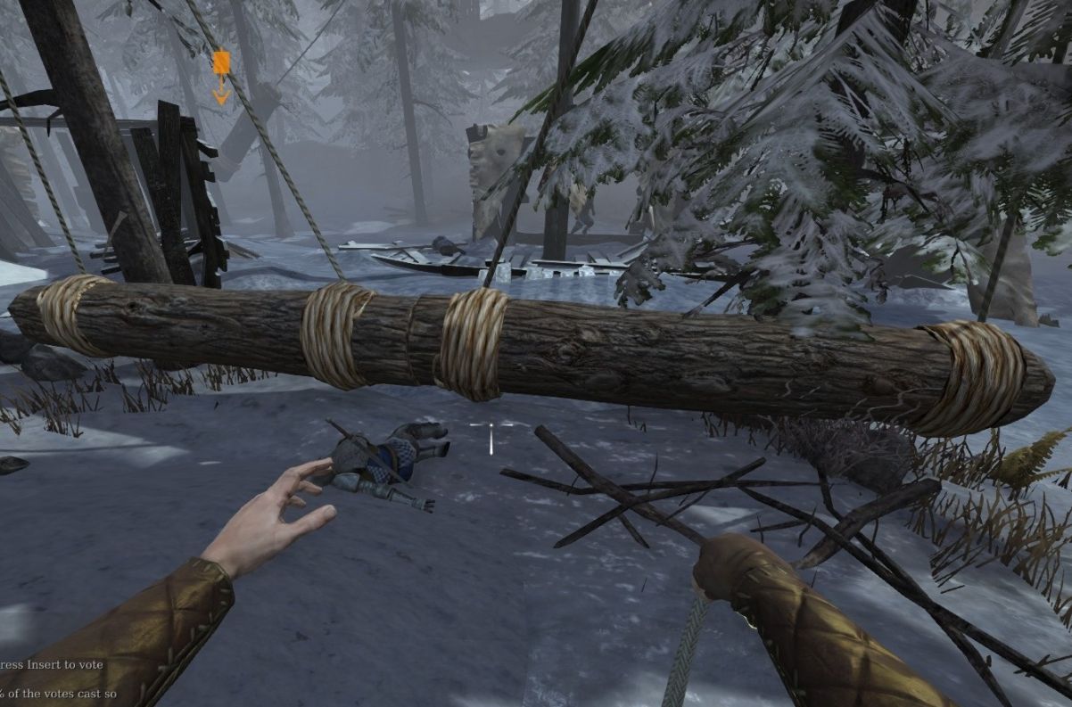 (圖七:雪地關卡的死亡陷阱:死亡巨木樁和被木頭夾死的騎士)